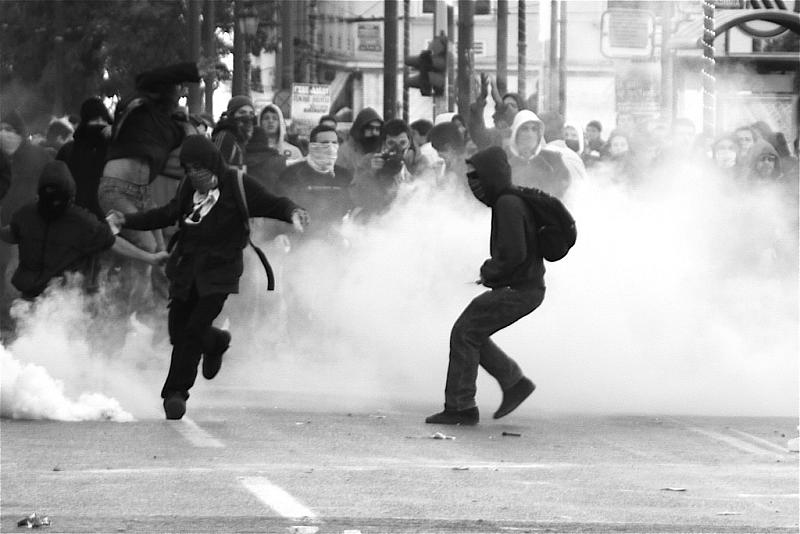 Elli wurde rebellisch, sie schaute dem Bullen in die Augen, nannte ihn Schwein – Mörder, sie schmiss ihm einen Marmorbrocken in die Fresse, legte einen Wahnsinnssprint ein, um nicht gepackt und mit dem Schlagstock windelweich geprügelt zu werden, sie hörte, wie sie ihr hinterher riefen, dass sie sie fertig machen werden, das kleine Luder, sie versteckte sich mit anderen, die sie nicht einmal kannte, in den Gassen, sie legte sich mit Typen von der Goldenen Morgenröte an, verbrachte drei, vier, ja fünf Nächte auf der Wache, eine im Krankenhaus mit zugeschwollenem Auge, sie lernte, immer Maaloxan, Wasser, Atemmaske, Taucherbrille und Mütze im Rucksack zu haben, sie lernte, Geheimpolizei, Faschos und Unbeteiligte zu unterscheiden, und schließlich lernte sie, was es heißt, mit Adrenalin im roten Bereich zu leben und es gefiel ihr. Sie fuhr voll darauf ab.