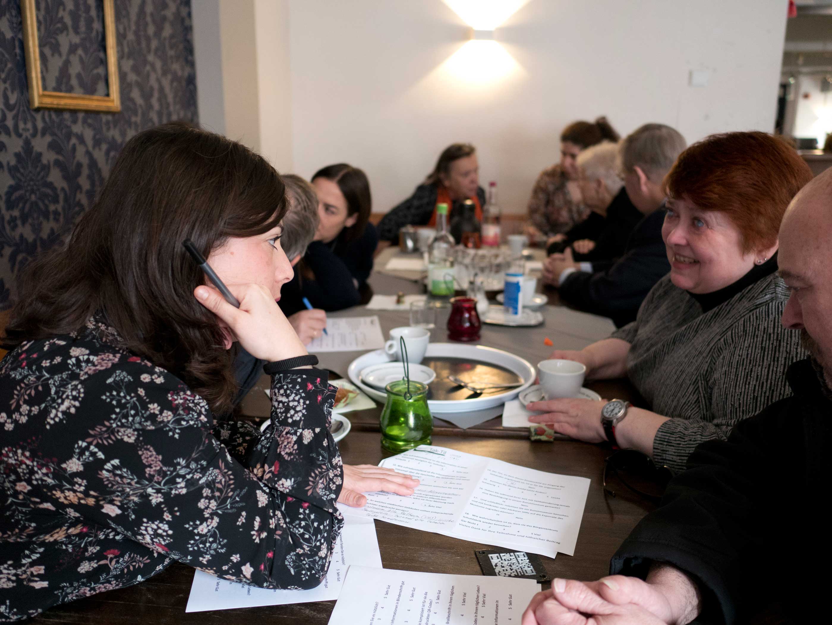 Es waren hauptsächlich ältere Menschen, sodass der Kontakt zugleich herausfordernd und bereichernd war. Heraufordernd, weil diese Menschen mit Seheinschränkung manchmal auch nicht mehr so gut gehört haben. Da meine Deutschkenntnisse sehr begrenzt sind, musste ich schnell andere Wege der Kommunikation finden. Das war bereichernd, weil dieser ganze Prozess meine Kommunikationsfähigkeit sehr gestärkt hat und mir gleichzeitig gezeigt hat, dass es beim Design der Tools sinnvoll ist, auch den Verlust des Gehörs als einen weiteren Faktor einzubeziehen.