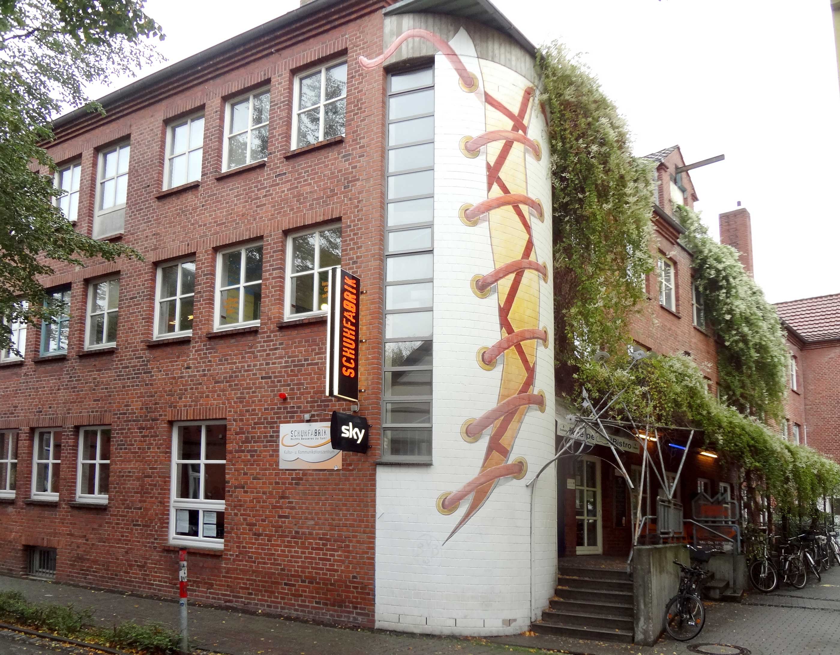 Das Bürgerzentrum Schuhfabrik ist ein lebhaftes soziokulturelles Zentrum – und das seit 35 Jahren. Wie der Name schon sagt, ist es eine ehemalige Schuhfabrik, in der Konzerte und Ausstellungen organisiert werden und der Dialog mit Bürgern und Einwanderern gesucht wird. Es gibt ein kleines Restaurant und eine Bar, in der sich die Menschen treffen und Ideen austauschen. Trotz dass es für alle Menschen und alle religiösen Hintergründe offen ist, ist es nicht komplett zugänglich für Menschen mit Behinderungen. Die Vision ist es aber, es zu werden und ich habe mich sehr gefreut, dass sie das Vertrauen hatten, den Ort für eine neue Zielgruppe zu öffnen und mich zu unterstützen und in die kleine Familie aufzunehmen.