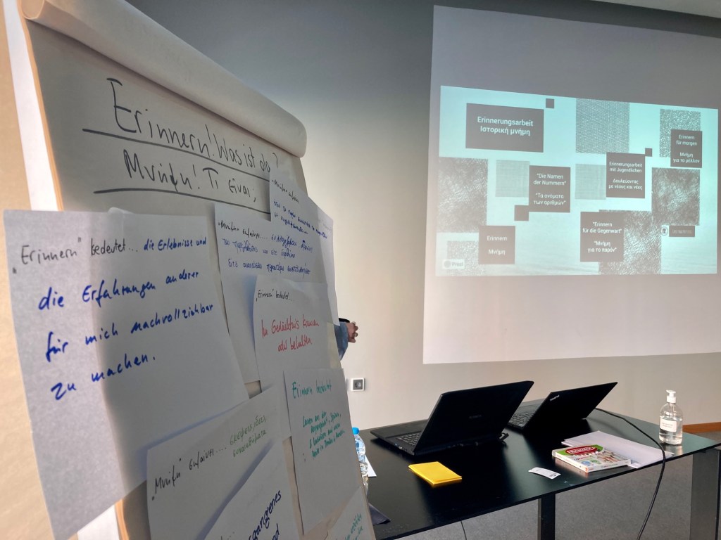 In einem anderen Projekt für den Wettbewerb für deutsche Auslandsschulen „Erinnern für die Gegenwart“ beschäftigten sich ihre Schüler mittels eines Dokumentarfilms mit der Geschichte ihrer Schule während der Besatzungszeit bis 1944 und dem Holocaust in Thessaloniki. „Wir wollten im Archiv der Schule recherchieren, allerdings wurden wir dort nicht fündig, weil es eine große Lücke mit fehlenden Dokumenten gab“, berichtet Prefititsi. Auch im Bundesarchiv fanden die Schüler nur Korrespondenzen, aber keine Antworten auf ihre Fragen etwa danach, wie viele jüdische Schüler oder Arbeitskräfte es gab, ob sie deportiert wurden und wie sie hießen. Dann kam die Corona-Pandemie, die einen Besuch in den Archiven in Auschwitz und einen Austausch mit polnischen Schülern unmöglich machte. „Damit es trotzdem Ergebnisse gibt, die bleiben, entschieden wir uns, einen Dokumentarfilm zu erstellen und hier Interviews mit Personen aus dem Täter- und dem Opferland sowie der Opfergruppe zu führen“, erklärt Preftitsi. Zwischen April und Juni wurde gedreht, dann folgte der Schnitt und nun stehe die Phase der Übersetzung und Untertitelung an. Ende des Jahres soll der Film fertig sein.