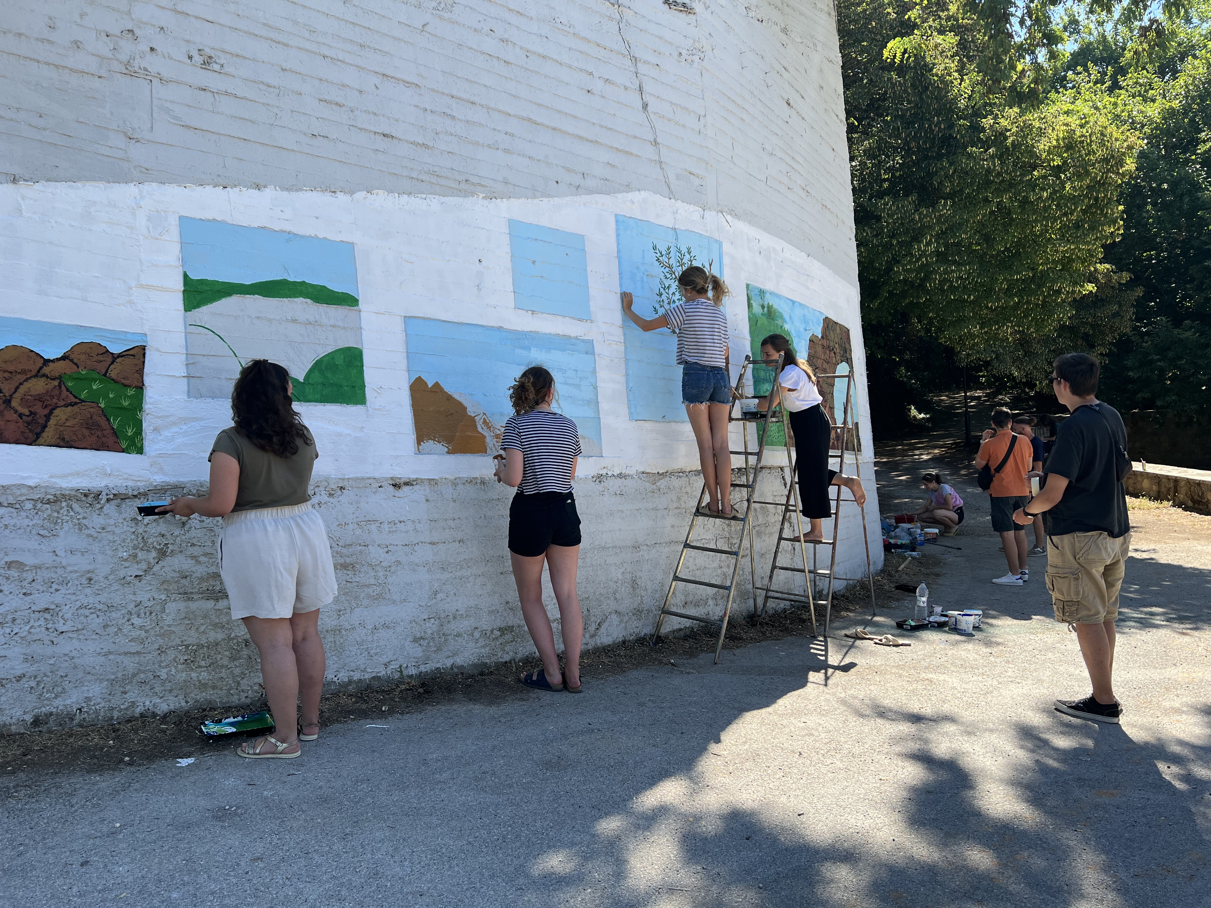 Ein großflächiges Kunstwerk auf einer zentralen Mauer im Dorfzentrum von Kryoneri – das ist eins der sichtbaren Ergebnisse einer Begegnung von Jugendliche aus Deutschland und Griechenland auf dem Peloponnes. Anfang Juli wurden die zwanzig Jugendlichen gemeinsam kreativ und beschäftigten sich mit den Themen Geschichte, Erinnerung und Musik. lm Fokus standen auch Besuche von Dörfern der Erinnerung.