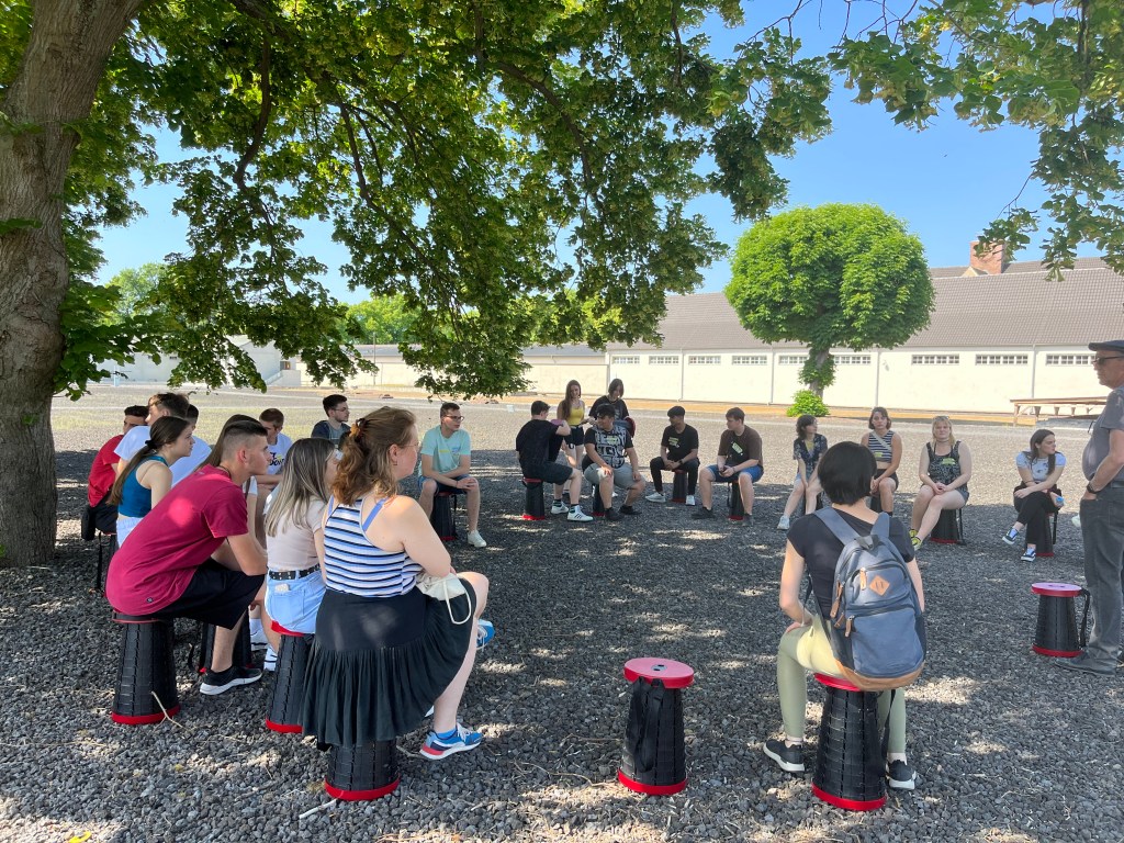 Am Anfang stand Corona und eine Menge Unsicherheit: Anfang 2022 fand unser Austausch nur über Online-Meetings statt. Das war die einzige Möglichkeit, dass wir einander kennenlernen konnten. Während dieser Meetings haben wir aber auch schon über die Geschichte des Zweiten Weltkrieges und über unsere Erwartungen gesprochen. Eines der Meetings wurde mit einem amerikanischen „Wordartist“ organisiert, der uns für uns eigenes Audioprojekt, das während der Austausche entstehen sollte, inspirierte.