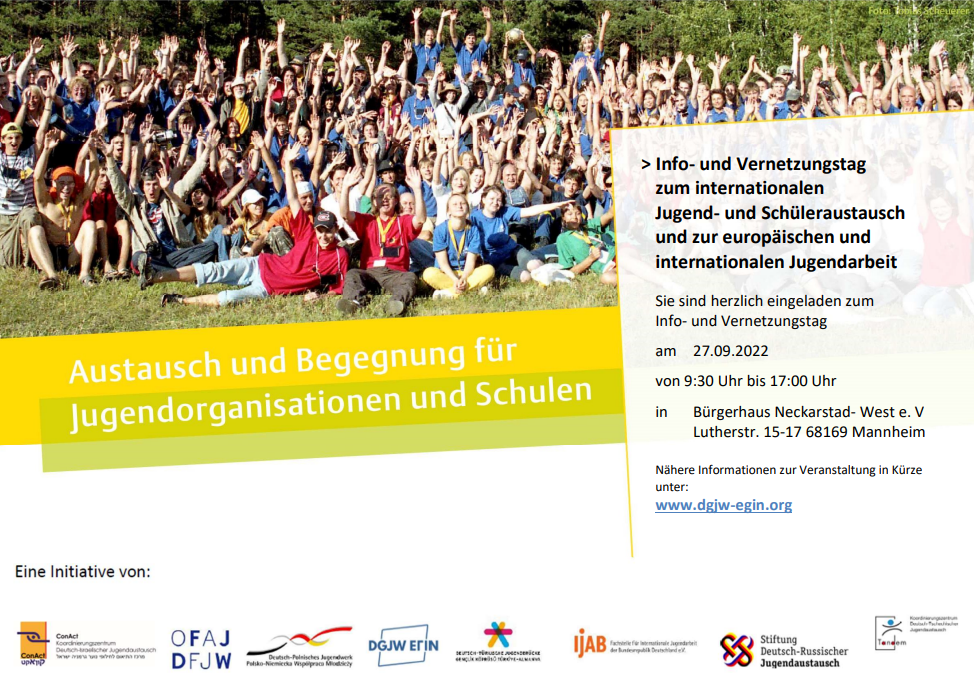 Am 26. und 27. September 2022 finden Info- und Vernetzungstage für Jugendorganisationen und Schulen der Förderstellen in Süddeutschland statt: Los gehts es im bayerischen Nürnberg, am kommenden Tag wird Halt gemacht in Mannheim.