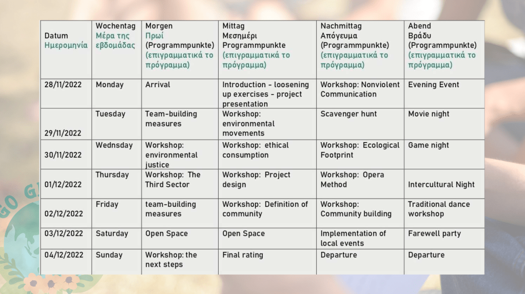 The idea of the exchange organized by the NGO iasis, Connect your City and Wilde Rose e.V. is to exchange ideas, opinions and experiences, develop soft skills and abilities, strengthen environmental awareness and adopt a greener lifestyle at an individual and collective level. It’s to listen to the new generation, to meet their needs and to create a safe, multicultural space for action.