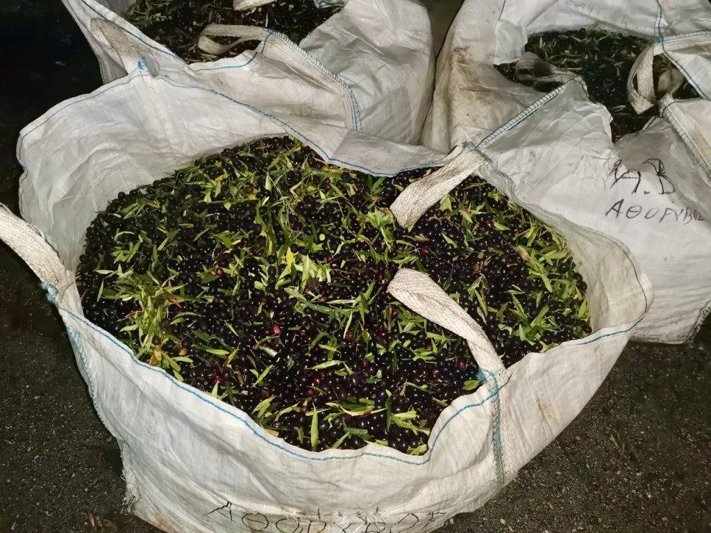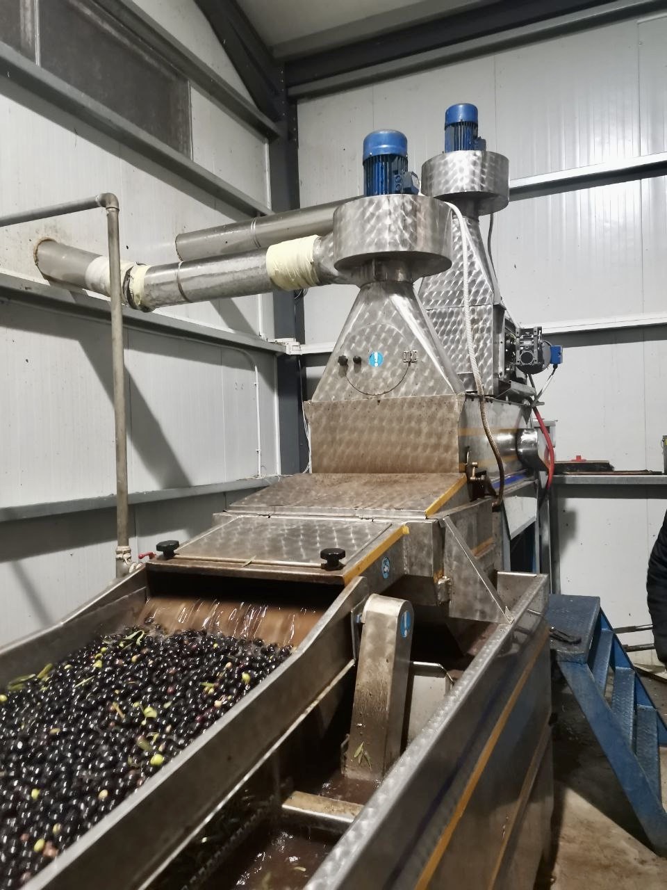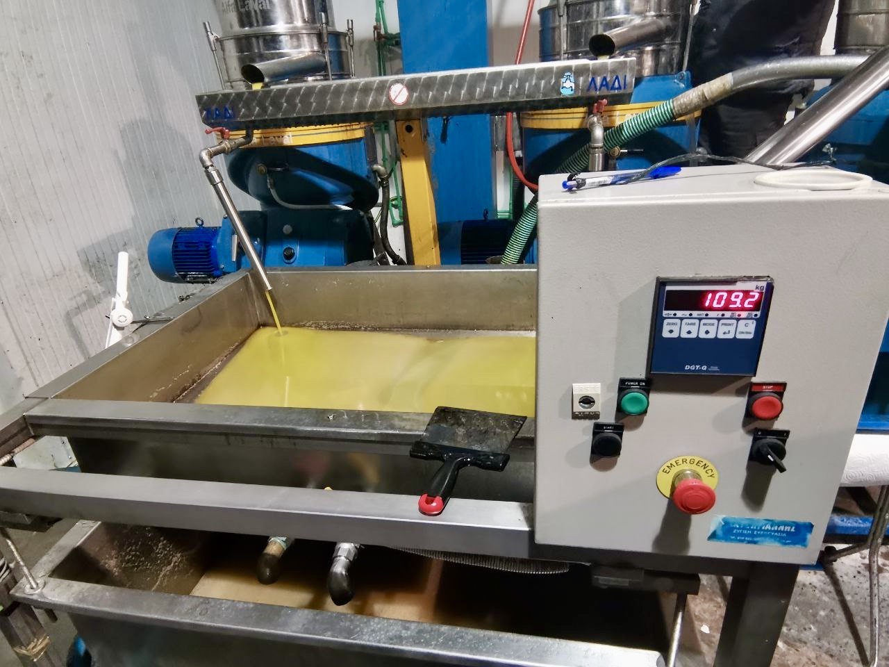 In der Olivenöl-Fabrik in Kryoneri werden täglich etwa 15 Tonnen Öl produziert. Dabei besteht zwischen Öl und Oliven ein Verhältnis von 1:5. Aus 4.000 Kilogramm Oliven werden ca. 1.100 Liter Öl hergestellt. Die Oliven werden bei einer schonenden Temperatur von etwa 25°C verarbeitet. Zuerst werden die Oliven in einem Behälter gründlich gewaschen und gewogen. Dann werden sie in der sogenannten Ölmühle von Ästen und Blättern befreit und zermalmt – allerdings ohne den Kern zu beschädigen. Die Kerne der Oliven werden gesammelt und zu Kernöl verarbeitet. Das ist nicht verzehrbar, sondern wird nur für pharmazeutische Produkte verwendet.