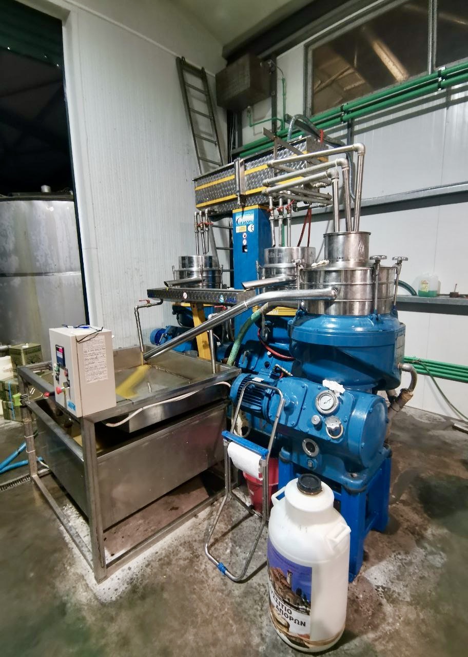Der in der Mühle entstandene feuchte Brei wird nun in der Maische für ca. 45 bis 60 Minuten gedreht und geknetet. Dieser Teil des Prozesses ist auch als „Massagephase“ bekannt. Danach landen die Oliven in der Zentrifuge, wo das Öl noch einmal vom groben Material getrennt wird. Dabei wird es mit warmem Wasser vermischt, um die Trennung von festen Elementen zu erleichtern. Ein Verteiler unterscheidet hinterher Wasser und Öl. Vor dem Abfüllen werden nochmals unnötige Bestandteile herausgefiltert, um Geschmack und Nährwerten nicht zu schaden. Zu guter Letzt wird das fertige Öl dann in Flaschen abgefüllt.