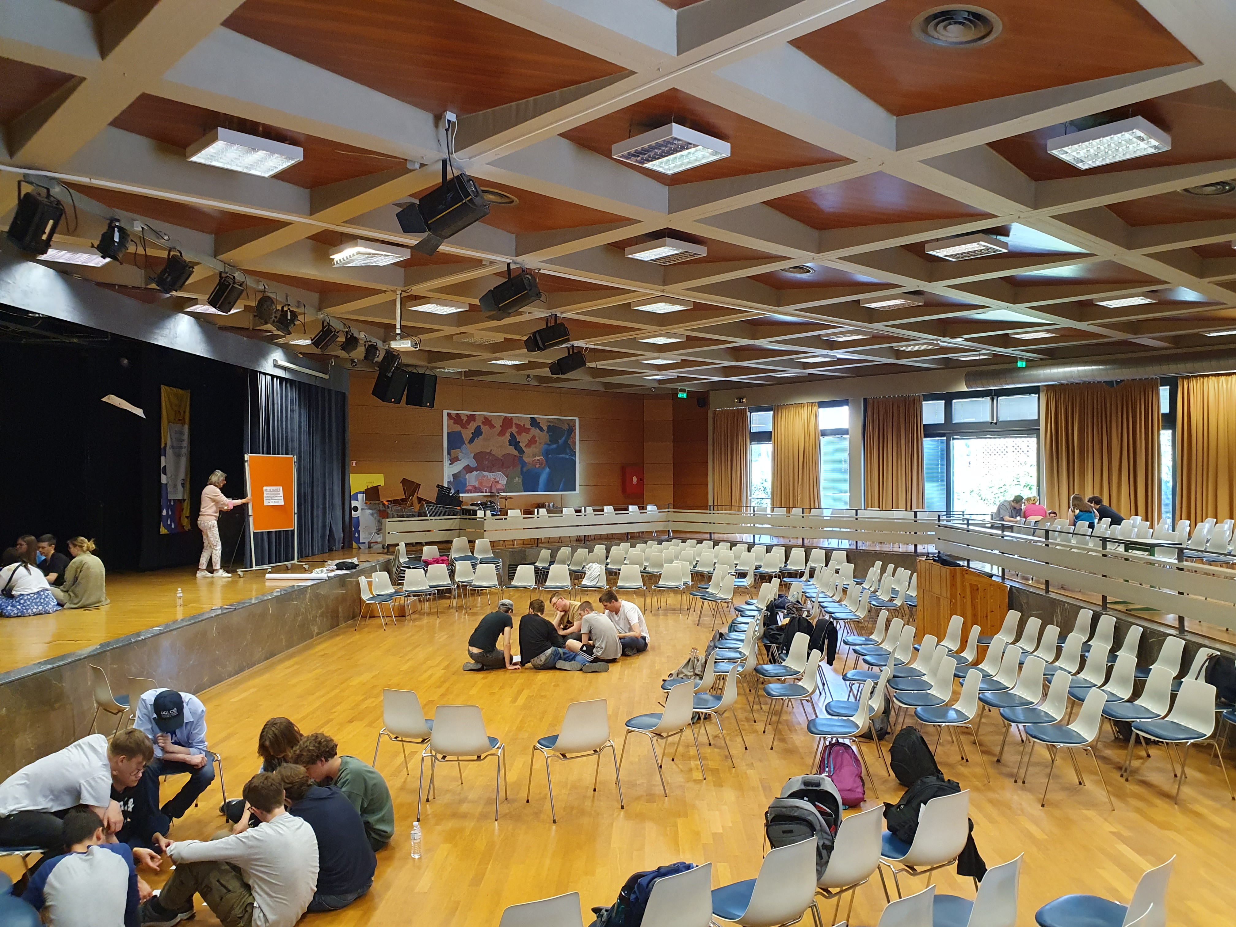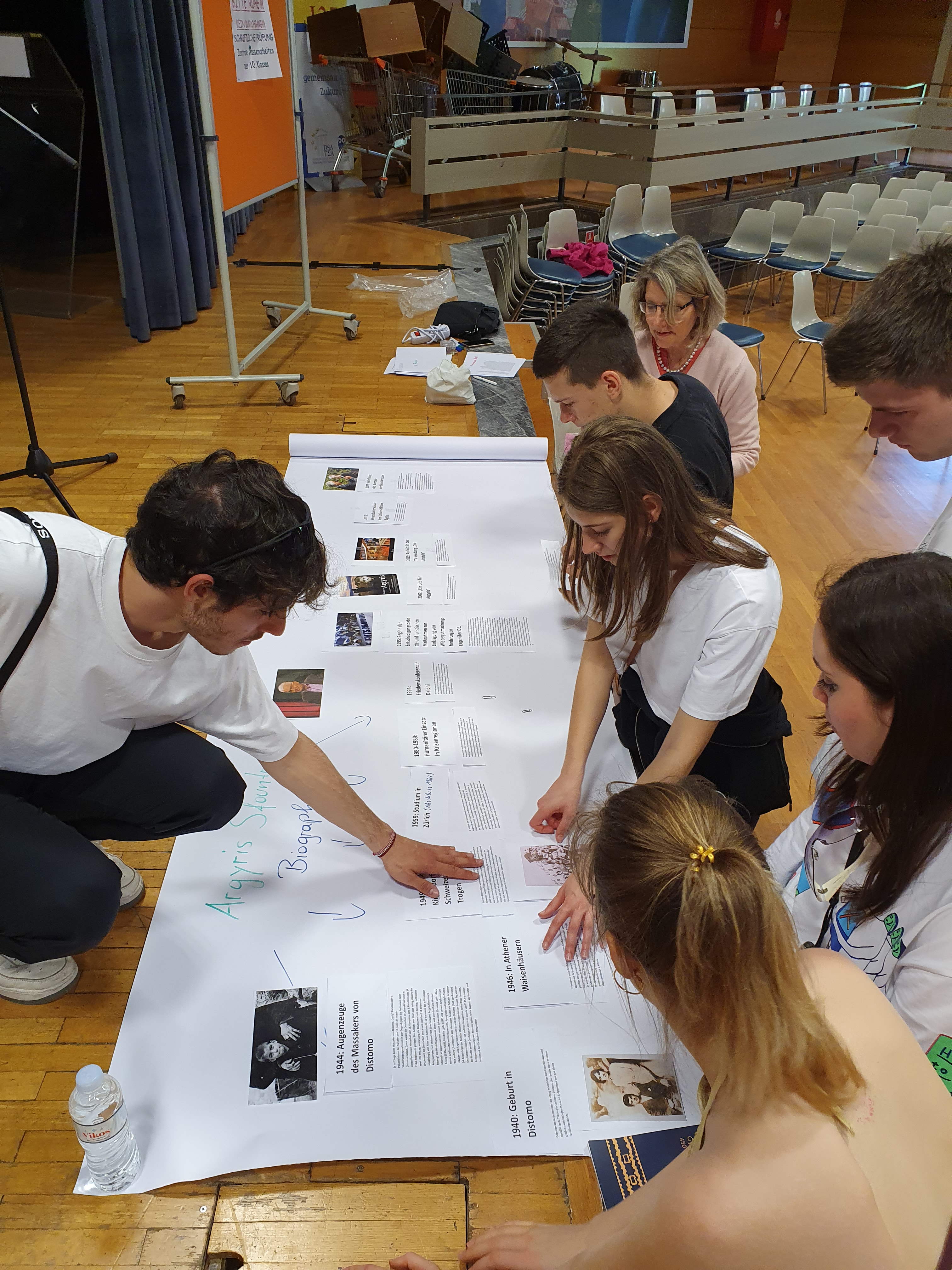 Der Tag stand im Zeichen von Workshops an der DSA mit Regina Wiesinger und der DSA erinnert-AG. Dort wurde das Zeitzeugengespräch mit Argyris Sfountouris vorbereitet. Der Tag begann mit der Begrüßung von schon im September bei uns gewesenen Schüler*innen. Um die neuen Mitglieder der „DSA erinnert“-Gruppe kennenzulernen, sollten wir uns nach Geburtsdaten von jung nach alt anordnen. Als Vorbereitung auf das Zeitzeugengespräch versuchten wir zudem die richtige Reihenfolge einiger früherer Interview-Ausschnitte herauszubekommen.