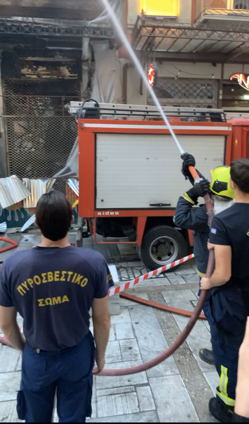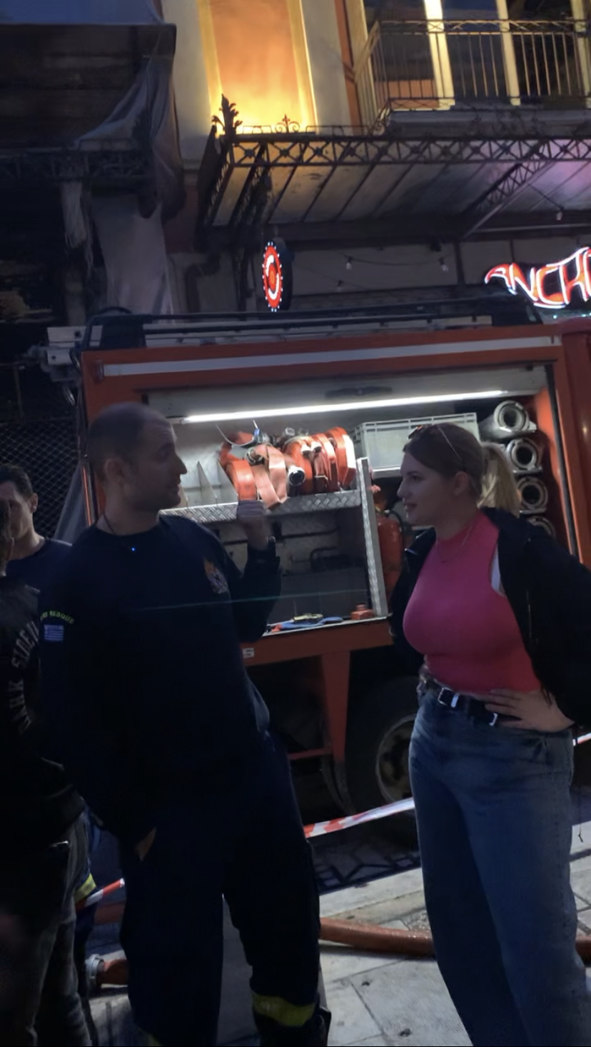 Wir saßen eines Abends zu viert in einem Restaurant mitten in einer Fußgängerzone und haben zu Abend gegessen. Das Haus neben unserem Restaurant war abgebrannt. Die Fläche darum war immer noch abgesperrt und ein Feuerwehrfahrzeug und vier bis fünf Feuerwehrmänner waren dort im Einsatz. Sie mussten immer wieder einen Balken im Dachgeschoss löschen, der ab und zu erneut anfing zu qualmen.