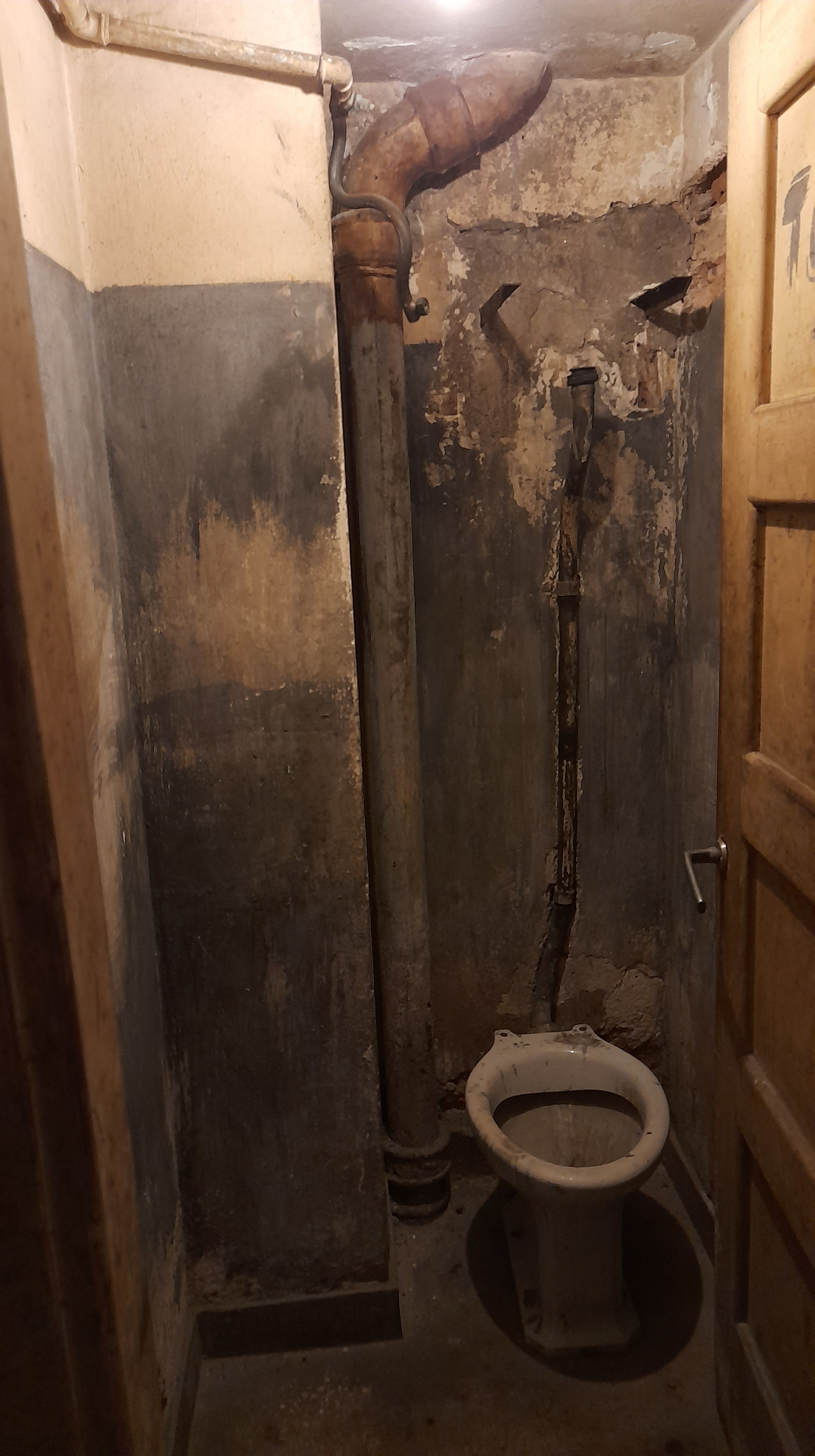 An den Wänden wurden Zeichnungen der Gefangenen freigelegt. Diese mussten die Insassen damals auf Anweisung der deutschen Soldaten überstreichen. Hier sieht man einen der drei Toilettenräume für zwei Etagen mit hunderten Gefangenen. Den ganzen Besuch über herrschte bei uns ein sehr beklemmendes Gefühl.