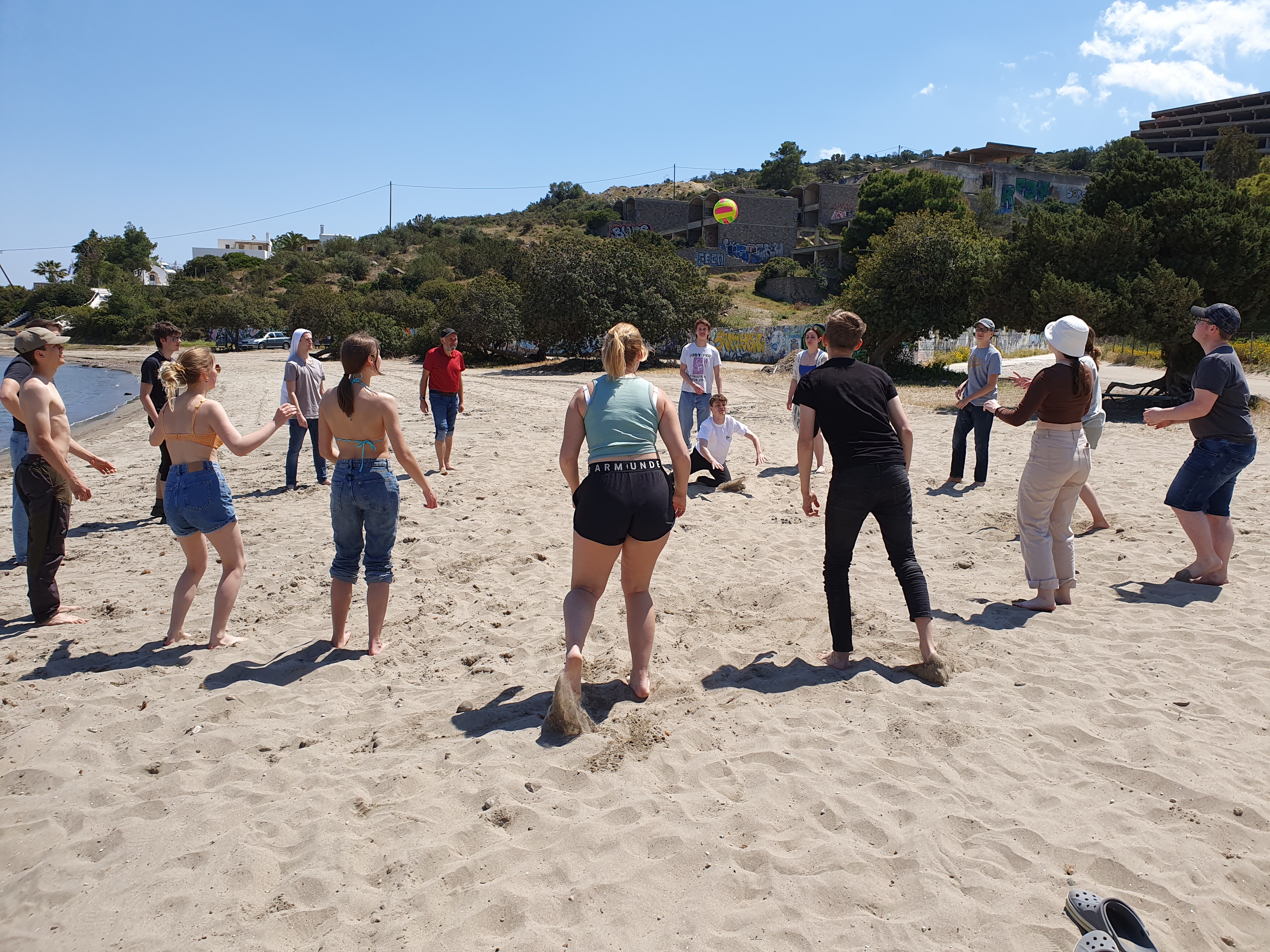 Auf zu einem Ausflug auf die Insel Ägina! Den Tag verbrachten wir mit Volleyballspielen am Strand, Eisessen und dem Erkunden der Insel. Schon die Fahrt auf der Fähre war besonders, weil die meisten von uns selten auf das offene Meer kommen. Äginas gesamte Szenerie war wunderschön. Das konnten wir auf dem Plateau des Aphaiatempels am besten sehen.