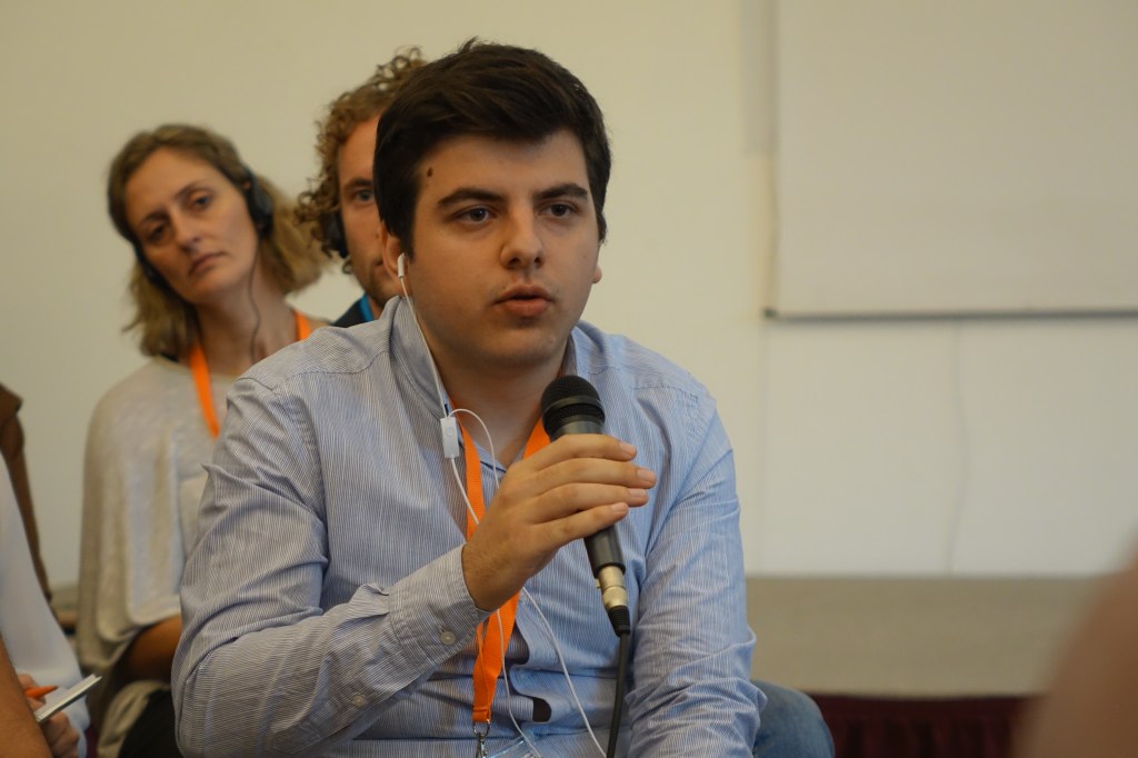 «Βρίσκομαι εδώ για δύο λόγους: Από την μία μεριά επειδή είναι πολύ σημαντικό για μένα, το ότι διαφορετικοί παράγοντες στον πεδίο της διεθνούς εργασίας νεολαίας συνδέονται μεταξύ τους και μπορούν να συναντηθούν από κοντά- επειδή είναι δύσκολο να επικοινωνείς μόνο μέσω emailή skypeόλη την ώρα. Από την άλλη μεριά, υπάρχουν κάποια επίκαιρα θέματα που μπορούν να συζητηθούν στο φόρουμ με πιο σωστό τρόπο. Επίσης πιστεύω ότι είναι πολύ σημαντικό να σου δίνεται η ευκαιρία να μιλήσεις με ανθρώπους που έχουν διαφορετικές απόψεις με εσένα ή που ζουν σε ένα πολύ διαφορετικό κοινωνικό περιβάλλον. Όσο μεγαλύτερη είναι η ποικιλία των απόψεων τόσα περισσότερα μπορούμε να μάθουμε ο ένας από τον άλλον. Επιπλέον, βρίσκομαι εδώ με την ιδιότητα του παιδαγωγού στο Γερμανο-γαλλικό ίδρυμα νεολαίας. Υπό αυτό το πρίσμα, είμαι υπεύθυνος για την εκπαίδευση των ομαδαρχών στο πεδίο της διαπολιτισμικής παιδαγωγικής και γλώσσας. Κατά τη γνώμη μου, είναι πολύ σημαντικό να σκεφτούμε τα προσόντα, τις γνώσεις, τις αρμοδιότητες και τις μεθόδους όπου θα έχουν οι άνθρωποι που θα στελεχώσουν το Ελληνο-γερμανικό ίδρυμα νεολαίας».