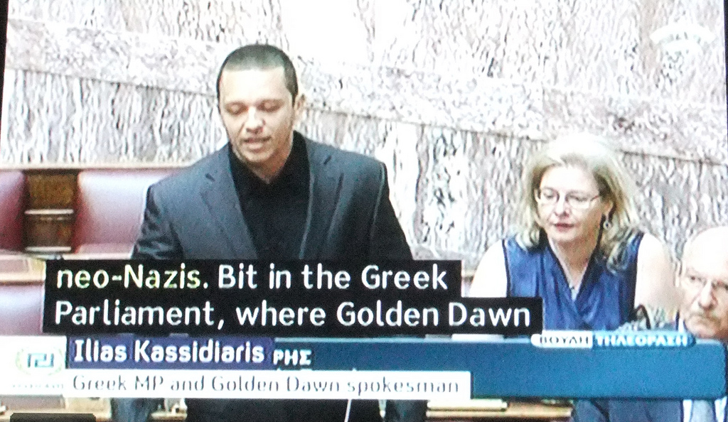 Rede des Sprechers der rechtsextremistischen „Goldenen Morgenröte“ 2013 im Parlament.